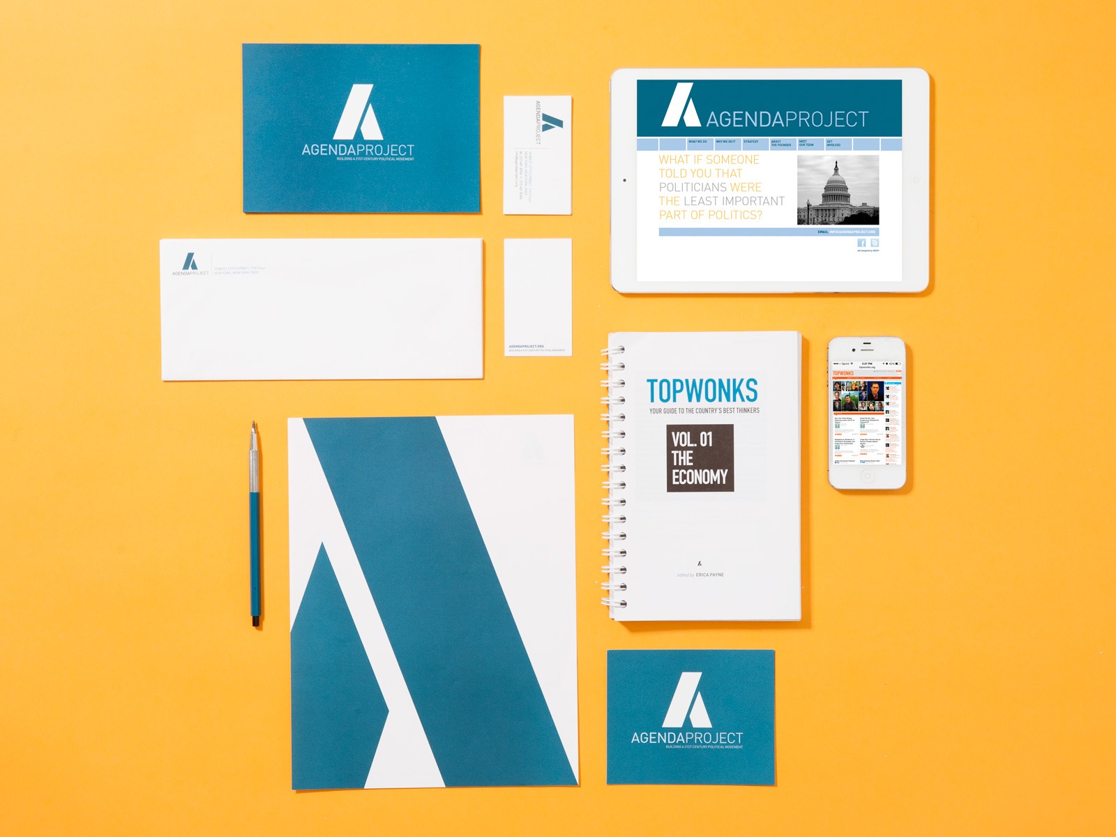 Studio Mesh designed an identity for progressive politics within New York-based think-tanks. Since its initiation, Erica Payne’s Manhattan-based public policy and advocacy organization, Agenda Project, has worked with Studio Mesh from the ground up to develop a cohesive, visual communication infrastructure. As the organization grew, we served as their design team, extending their visual identity into a multi-media brand. Conceptually, we remain true to our common theme embodied by the logo – the moment where the “left” surpasses the “right” – as we strategically craft brand visuals to simplify complex messaging, while targeting philanthropists, donors, and the modern, progressive public.